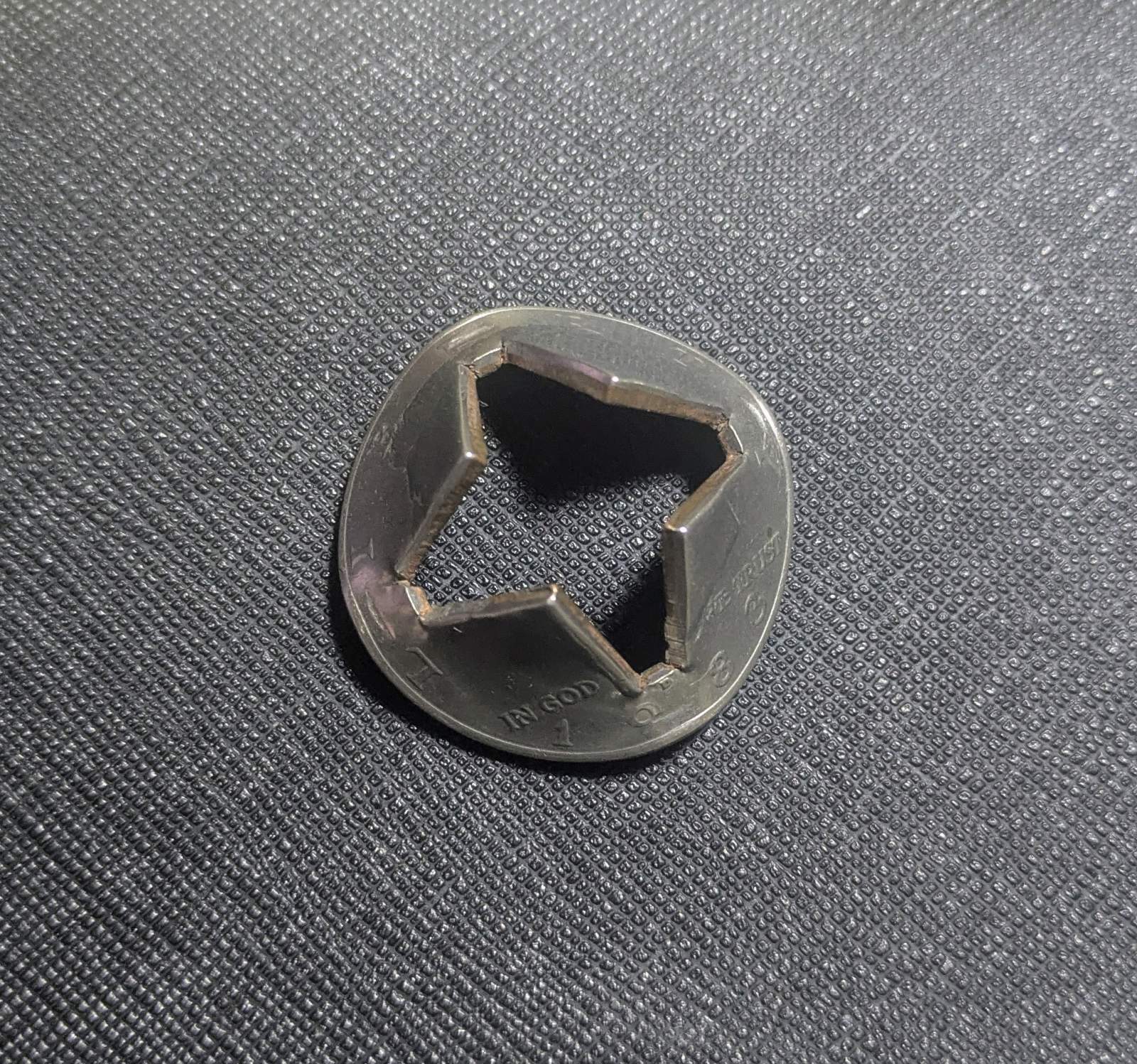 ペンを貫通させたり、コインの中央を噛んでみたりなどなど、色々な使い方ができる空手コインです。